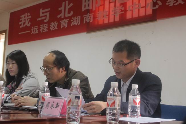 廖海洲主任和周永新老师介绍了湖南远程校外学习中心员工支持服务队伍建设及员工支持服务反馈情况。湖南校外学习中心自2012年春季学期开始正式组建由廖海洲主任亲自任组长、周永新老师任副组长,段炼老师、周文石老师等11名师生为组员的员工支持服务工作团队。该团队以服务员工为宗旨,在上网、作业提交、参加辅导和考试、毕业设计等环节进行监控,对员工进行有针对性的督促,并提供学习方法指导。团队自组建以来,已通过邮件、电话、QQ群等多种方式开展学习支持服务,大大增强了湖南员工支持服务工作力度。