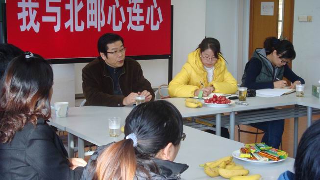 2012年12月9日,上海远程校外学习中心举办了“我与北邮心连心”主题活动——新老生经验交流座谈会。上海电信培训中心金伟副董事长、上海校外学习中心朱剑萍主任、陶燕老师、李瑞芳老师、网院员工支持服务中心王敏敏老师以及上海新老生代表共20余人参加座谈。座谈会由朱剑萍主任主持。