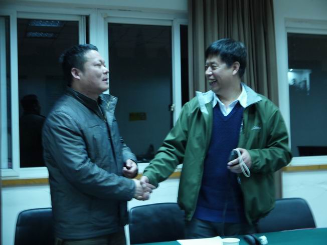 浙江邮电职业技术学院经理助理张新与北邮网院王振彦老师握手 祝贺会议圆满成功